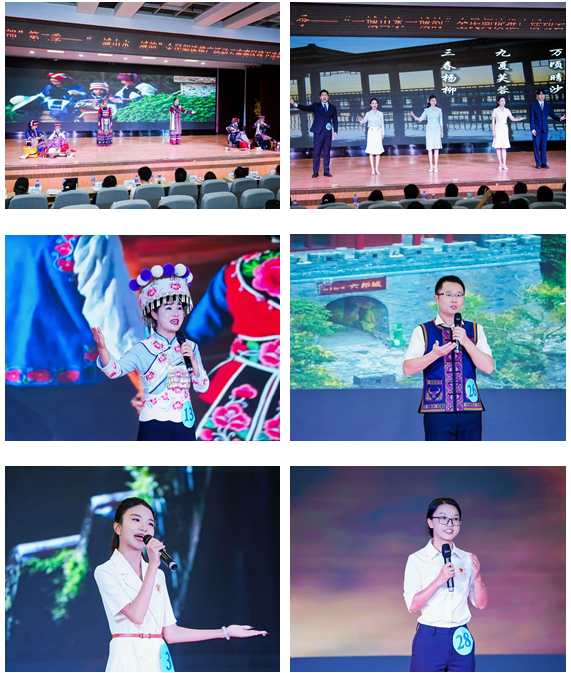 比赛现场,5位专业评委秉持公平公正原则,从作品内涵、表达技巧、形象仪表等维度综合评审。选手们或以深情朗诵勾勒昆明“字里行间”的人文肌理,或以激昂语调重现曲靖三元宫会议的红色峥嵘,更有丽江古城的神秘悠远、普洱景迈山的千年茶韵、迪庆香格里拉的诗意秘境……选手们时而低吟浅诵,时而慷慨激昂,一件件作品如画卷徐徐展开,让在场观众沉浸式感受云南大地的多元文化与深厚底蕴。