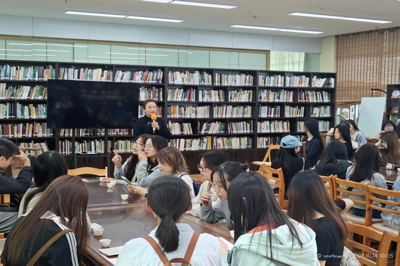 在历史文献阅览室,省图书馆历史文献部杨扬老师就我省古籍保护工作成果、古籍数字化工作的流程与价值意义等内容与同学们进行了交流。