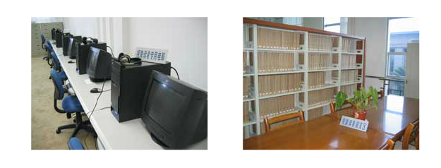 盲人阅览室位于图书馆二楼右侧电梯旁、期刊借阅室内一个相对独立的区域,面积约90平方米,