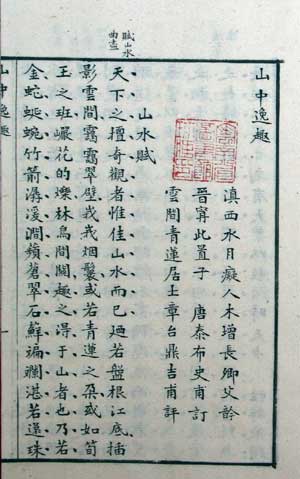 《山中逸趣》不分卷,(明)木增撰,唐泰订,章台鼎评,据明崇祯刻本传抄,一册。