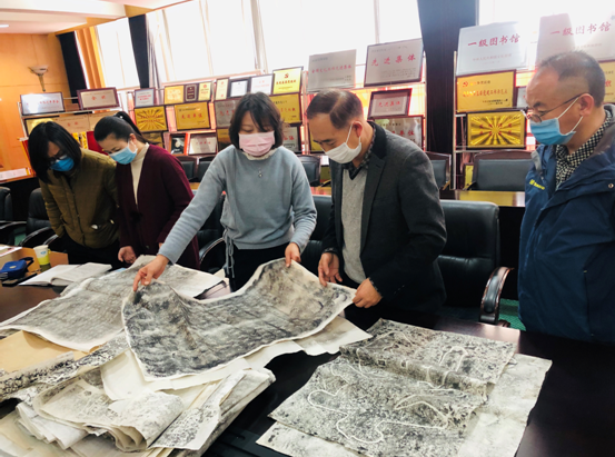 交流中,马馆长还现场查看了双柏县图书馆送来本馆进行数字化加工的一批拓片,并就进一步提高传拓技术水平等提出了建议。