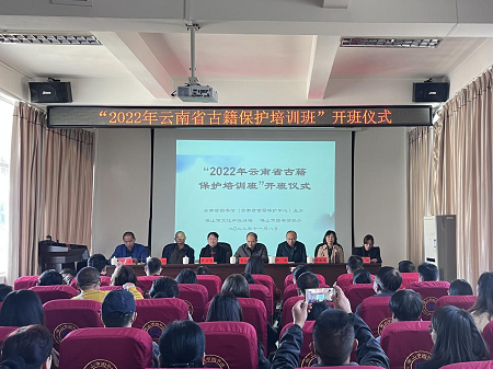 开班典礼于11月8日上午在保山市图书馆举行,云南省图书馆副馆长周宇青,云南省古籍保护中心主任马云川,保山市文化和旅游局副局长许强,云南省图书馆历史文献部主任、云南省古籍保护中心副主任计思诚,国家级古籍修复技艺传习中心云南传习所导师杨利群等出席开班仪式。开班仪式由保山市图书馆馆长杨新泰主持。
