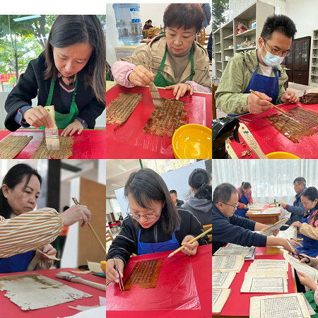 培训班充分发挥云南省古籍保护中心多年来培养的古籍保护骨干的作用,从参训学员中遴选骨干学员协助教学工作,分三个小组分别进行普查、修复、传拓培训。