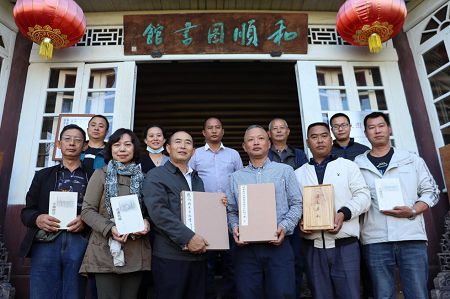 图为云南省图书馆向和顺图书馆捐赠影印古籍《滇南草本》等珍贵文献