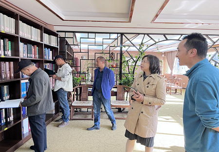 图为参观施甸县图书馆古籍书库和阅览室