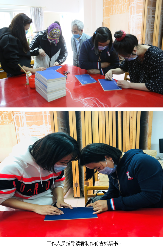 当天,30余名读者齐聚我馆一楼古籍修复中心修复室,兴致勃勃参加活动。活动中,我馆古籍修复人员给读者讲解了古籍破损情形、古籍破损因素、古籍修复工具、古籍修复用纸及古籍修复方法等知识,现场演示并指导读者修补破损古籍书叶,亲手制作仿真线装书。读者在我馆修复人员的指导下,聚精会神地对残破的古籍进行精心修复,看着自己一点一点亲手修复的残破古籍重获新生,看着自己一纸、一捻、一针、一线亲手制作的古色古香的仿古线装书,心生喜悦的同时不仅由衷地感叹古籍修复技艺的神奇与伟大。活动结束后,读者们还近距离观看了古籍修复师们日常的修复作品。