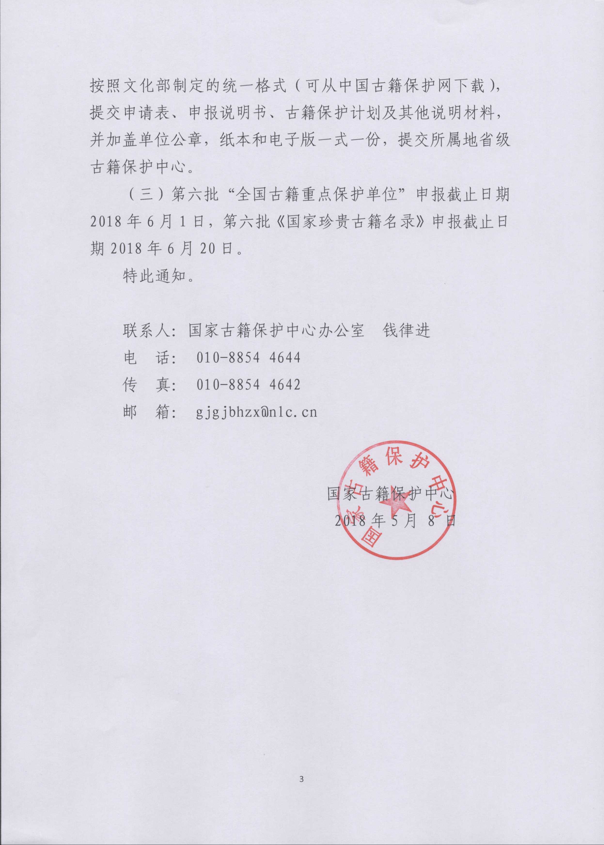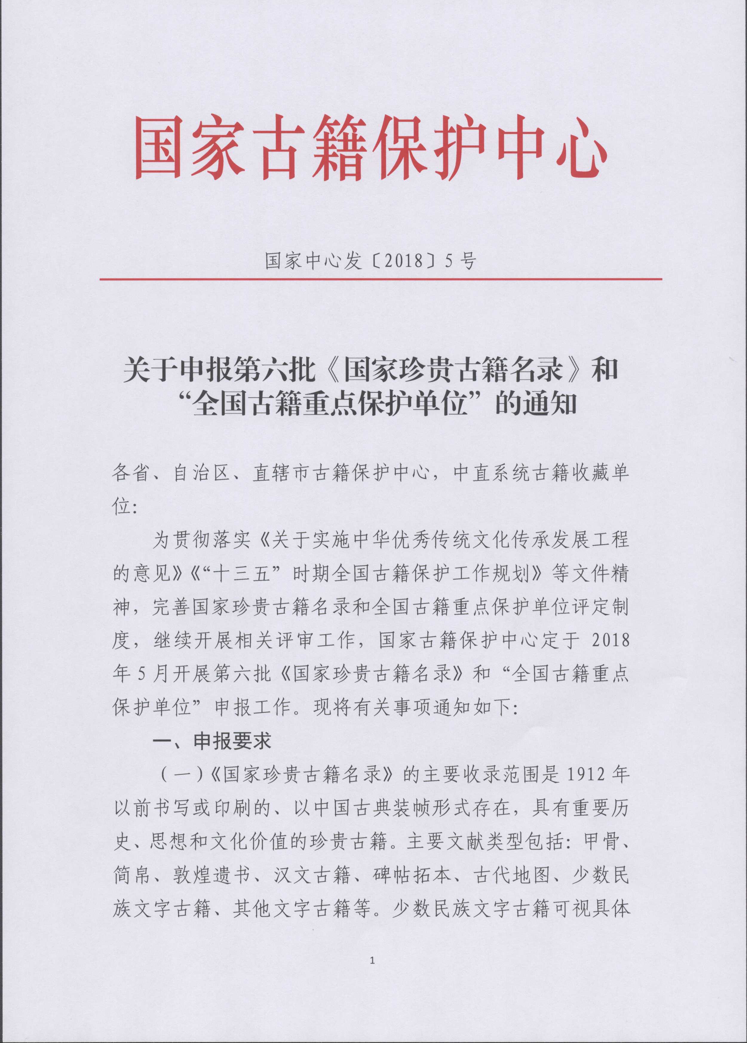 关于申报第六批《国家珍贵古籍名录》和“全国古籍重点保护单位”的通知
