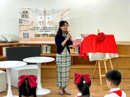 今年4月23日至29日是文化和旅游部确定的“公共图书馆服务宣传周”,为贯彻落实党的二十大关于深化全民阅读活动的重要部署及教育部等八部门联合印发的《全国青少年学生读书行动实施方案》精神,经过多次实地调研,云南省图书馆在昆明市五华区龙翔小学设立了云南省首家“云南省图书馆青少年学生阅读基地”。以此为契机,4月23日“世界读书日”当天,云南省图书馆第二党支部、第四党支部的党员代表走进学校,与龙翔小学党支部进行了以“‘悦’读有你—我是小小讲书人”为主题的支部联建活动。活动中,少先队员们带领每一位党员沉浸式共读一本好书,党员们也和孩子们分享了阅读的感受,党员和少先队员以阅读为纽带,进行了积极的互动,心与心紧紧地融入在一起。活动最后,孩子们与党员们一起在象征希望和生命的绿色“树叶”卡片上书写了“阅读寄语”,整个活动温暖、亲切。