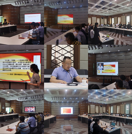 在系统学习研讨的基础上, 5个读书小组分别聚焦《习近平著作选读》第一卷中《把宣传思想工作做的更好》、《要有高度的文化自信》、《构筑各民族共有精神家园》、《守纪律,讲规矩》,第二卷中《在庆祝中国共产党成立100周年大会的讲话》、《使伟大抗疫精神转化为实现中华民族伟大复兴的强大力量》、《把握新发展阶段,贯彻新发展理念,构建新发展格局》等篇目,结合小组学习讨论成效及自身工作实际,创新读书分享形式,采用了微党课、集体诵读、视频短片、配乐朗诵、线上线下同步分享等丰富多彩的形式让支部每位党员学深悟透。读书会期间,党员们一同观看了《习近平的文化情怀》视频短片,聆听了支部党员杨和祥同志以《坚定文化自信,推动公共图书馆事业高质量发展》为主题的微党课,现场播放了读书小组精心制作的疫情期间支部党员冲锋在前、敢于担当、投身一线的纪实照片视频,支部全体党员共同诵读原著,交流感悟心得,现场气氛热烈,掌声不断。党员们一致表示:要自觉把习近平新时代中国特色社会主义思想转化为坚定理想、锤炼党性和指导实践、推动工作的强大力量!