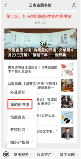 二、凡中国公民均可凭本人有效身份证通过云南省图书馆微信公众号在线自助注册。