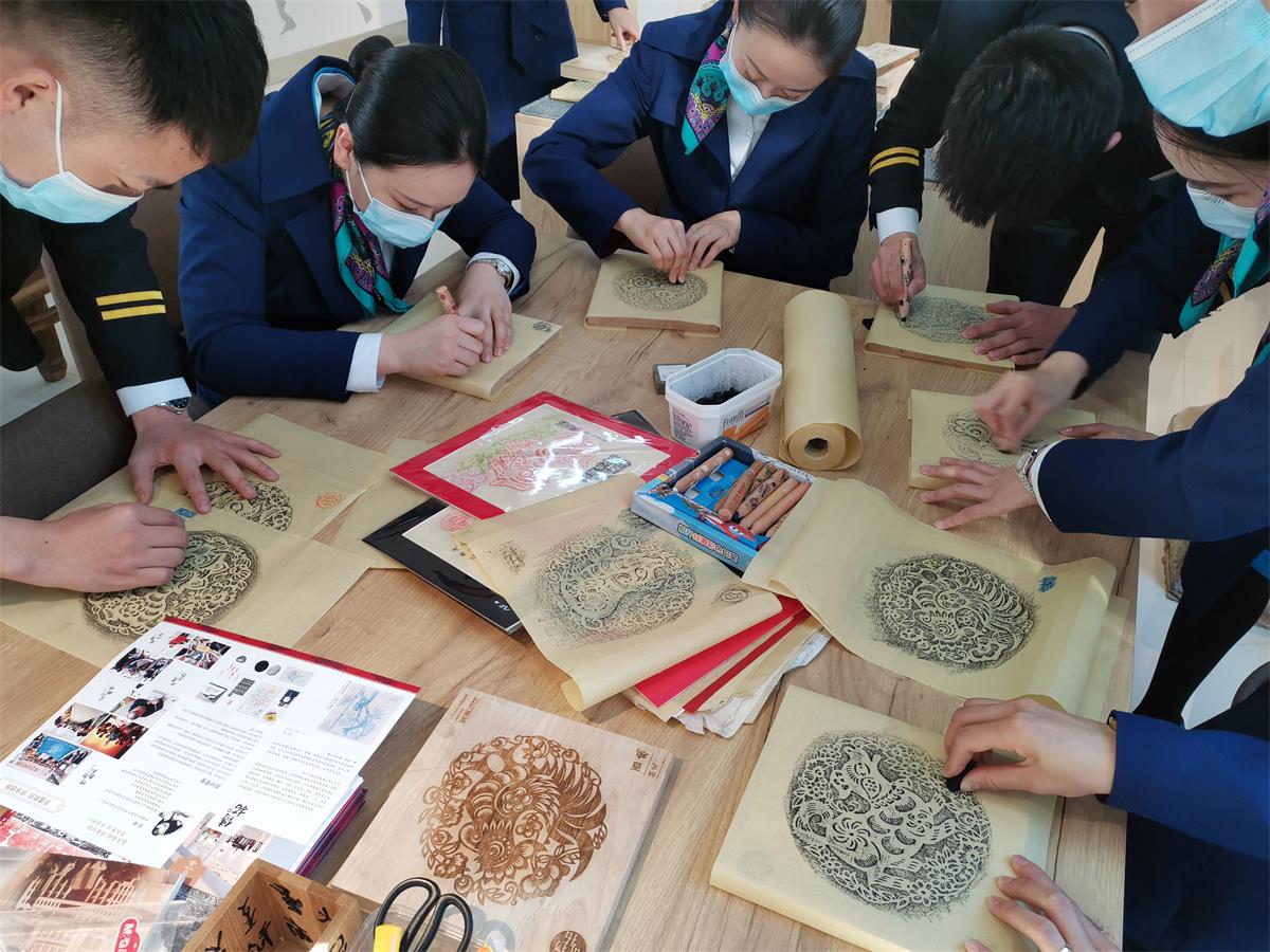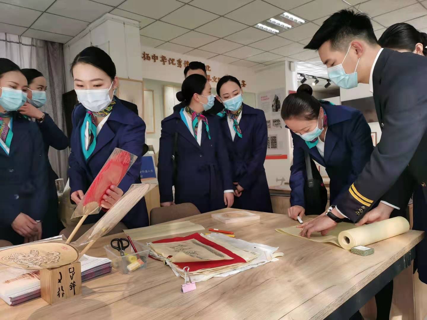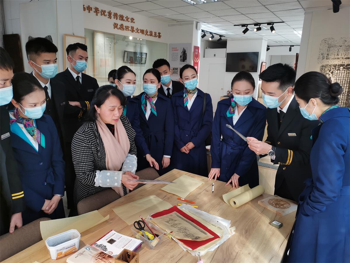 云南省图书馆馆长马云川对“阿诗玛”示范组的到来表示欢迎,安排办公室予以热情接待。在办公室负责人陪同下,“阿诗玛”示范组实地参观了“百名摄影师聚焦脱贫攻坚”展览及相关阅览室,并现场开展了简短而生动的读书分享会,将各自参观学习和阅读心得进行了交流分享,纷纷表示要努力学习、学用结合,将书中所学到的理论知识付诸于实际行动,不断提高空乘服务水平。随后,“阿诗玛”示范组参观了云南省图书馆古籍修复保护传拓研习馆,不仅了解了古籍修复传拓的相关知识,还亲自体验了从剪裁纸张到拓磨的整个传拓过程,现场感受了中华传统文化的浓厚魅力。