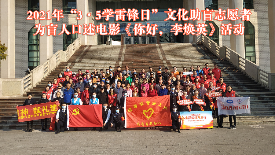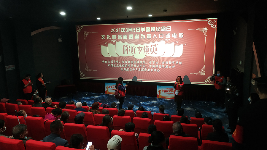 二是云南省图书馆与省残联组织联络处、省盲协、云南警官学院、中国农业银行昆明呈贡区支行、昆明市政府办党支部、中国银行翠湖支行、昆明航空公司等单位志愿者联合开展了“文化助盲志愿者为盲人口述电影《你好,李焕英》活动”。80余位盲人读者在志愿者们的引导搀扶下,从省图书馆步行到新建设电影院,并在志愿者的讲述下,“观看”了《你好,李焕英》这部最新的优秀院线电影。活动结束时,盲人读者纷纷表示,感谢志愿者们的无私付出,让盲人能够走出家门融入社会。特别是云图组织的看电影活动丰富了大家的精神文化生活,让大家深深感受到了社会的温暖。