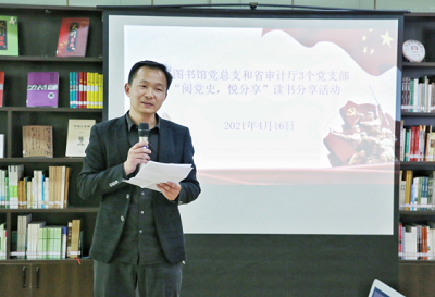 为庆祝中国共产党成立100周年,在2021年“4▪23世界读书日”即将来临之际,云南省图书馆党总支联合云南省审计厅审计委员会秘书处党支部、财政审计处党支部、计算机技术中心党支部于4月16日共同开展了“阅党史,悦分享”读书分享主题党日活动。