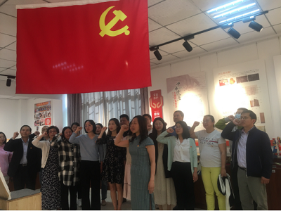 最后,全体党员面对党旗,举起右手,庄严重温入党誓词。短短十二句话,字字千钧,一字一句,神圣而豪迈,时刻提醒着全体党员要坚定如磐初心,践行使命担当。