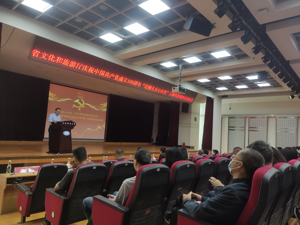 活动中,马云川馆长、赵春明厂长分别致辞,杨德聪副厅长宣布活动开幕。来自“百名红色讲解员讲百年党史”宣讲活动的云南陆军讲武堂历史博物馆讲解员张睿讲述了《朱德为革命保存火种》、大理白族自治州博物馆讲解员杨枫讲述了《中国革命先驱者 云南解放奠基人——献给中共云南省委第一任书记王德三》、迪庆州红军长征博物馆宣教部主任和晓燕讲述了《“兴盛番族”锦幛民族团结传佳话》。通过三位优秀讲解员的生动讲述,带领与会人员共同重温党的光辉历程,汲取砥砺奋进的磅礴力量,做到永远感党恩、听党话、跟党走,同时激励大家在实现中华民族伟大复兴中国梦的奋斗历程中,通过高质量的文化和旅游服务、一流的工作业绩不断增强人民群众的获得感、满足感和幸福感。
