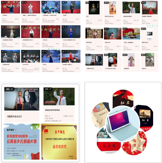 2021年7月,由云南省图书馆联合全省各级公共图书馆共同开展的“童声诵党”庆祝中国共产党建党100周年少儿朗诵大赛顺利结束。活动设“文稿类作品”和“朗诵类作品”,每类作品设有“特等奖”“一等奖”“二等奖”“三等奖”“最佳人气奖”和“最佳组织奖”,吸引全省广大青少年儿童积极参与,以笔抒怀、以声传情,共同向党吐露心声。