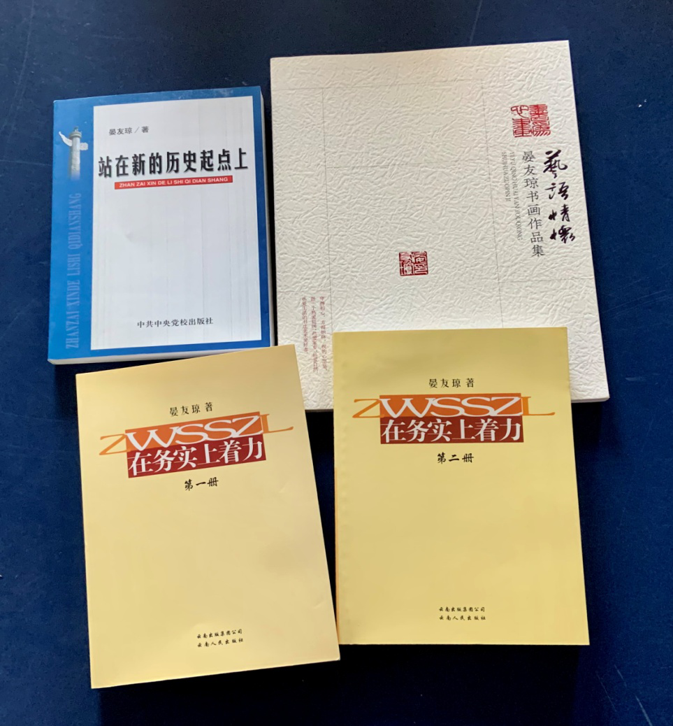 2021年10月30日,原云南省人大常委会常务副主任晏友琼向云南省图书馆捐赠了《在务实上着力(第一、二册)》《站在新的历史起点上——在西部大开发中加快昭通发展的思考》《艺语情怀——晏友琼书画作品集》等个人著作,共计4种31册。