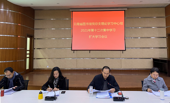12月3日,云南省图书馆党总支召开理论学习中心组2021年第十二次集中学习(扩大)会议。馆领导、党总支委员、全体中层干部、各支部书记委员、全体党员参加会议。党总支书记、馆长马云川主持会议。