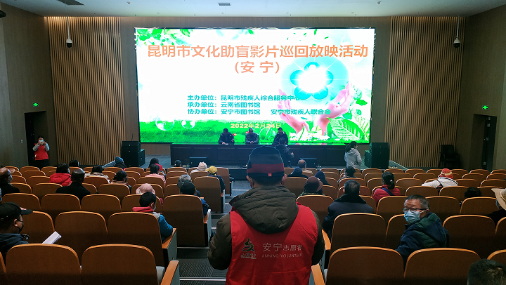 为进一步丰富盲人精神文化生活,提升盲人等残疾人群的幸福感、获得感、认同感,同时助推昆明市公共文化服务场所信息无障碍建设,提高残疾人文化服务水平,由昆明市残疾人综合服务中心主办、云南省图书馆承办、各相关单位协办的“昆明市文化助盲影片巡回放映活动”2月24日在安宁市图书馆举行。