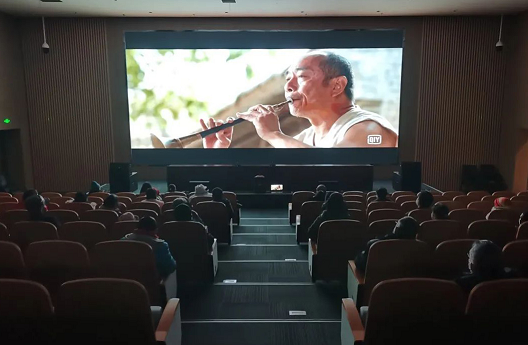 活动当天,在文化助盲志愿者的现场解说下,40余名盲人读者“观看”了国产优秀影片《百鸟朝凤》。这部影片讲述了德高望重的老一代唢呐艺人焦三爷及其徒弟用执着的热情与坚定的信念追求和传承唢呐精神的故事。