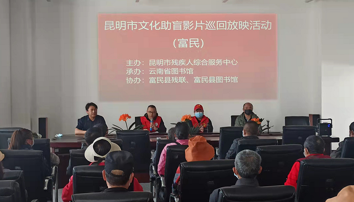 3月10日,由昆明市残疾人综合服务中心主办,云南省图书馆承办,富民县残联、富民县图书馆协办的“昆明市文化助盲影片巡回放映活动”在富民县图书馆举行。