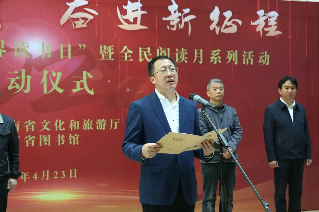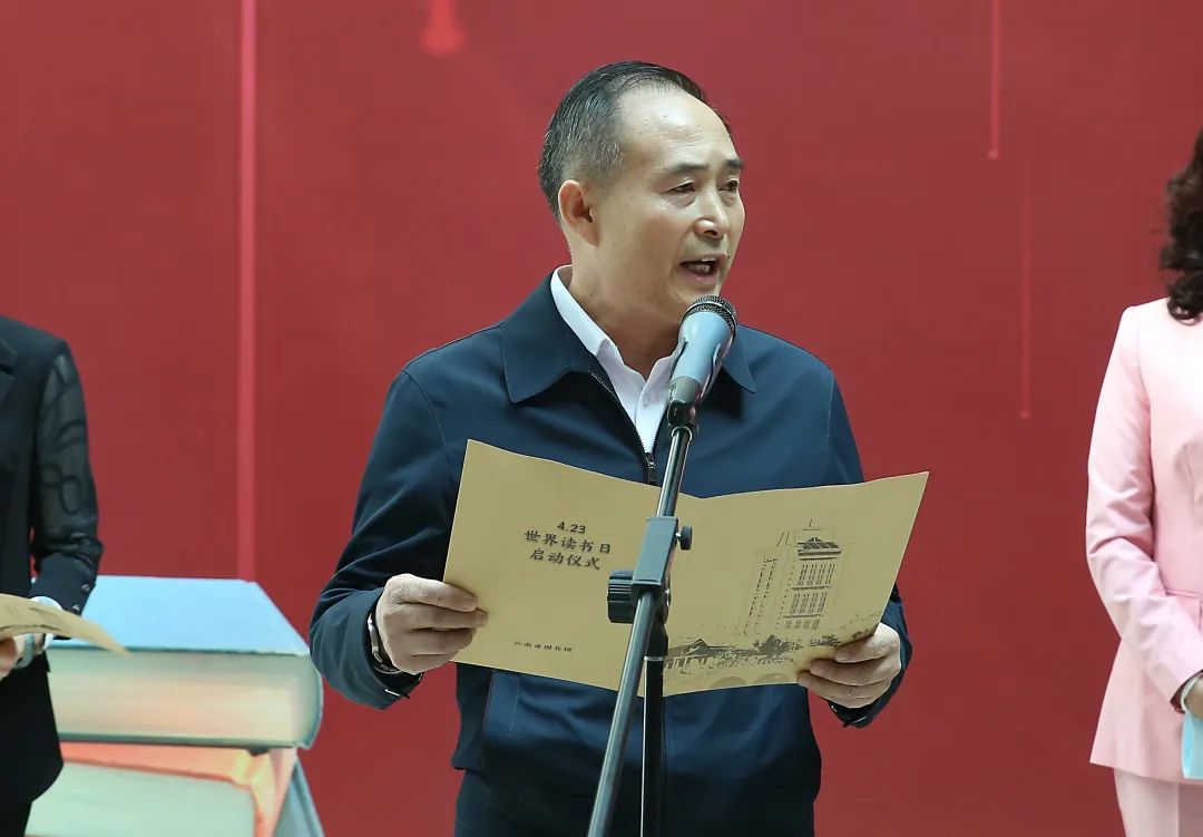 为深入贯彻落实习近平总书记的贺信精神,推进全民阅读,建设“书香云南”,由云南省文化和旅游厅主办、云南省图书馆承办,以“阅读新时代 奋进新征程”为主题的云南省“4▪23世界读书日”暨“全民阅读月”系列活动启动仪式于4月23日顺利举行。云南省委宣传部副部长、省电影局局长翟玉龙,省文化和旅游厅党组成员、副厅长王江红,省委宣传部文艺处处长沈洋,省文化和旅游厅公共服务处处长郭振荣,省作家协会副主席、鲁迅文学奖获得者、著名诗人雷平阳,省戏剧家协会秘书长、国家一级演员李红梅,省盲协主席汪靖人,省图书馆党总支书记、馆长马云川等领导和嘉宾,以及省文旅厅相关处室人员、盲人读者代表、消防救援指战员、青少年读者代表、相关新闻媒体记者等50人参加了启动仪式。