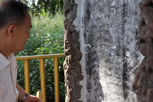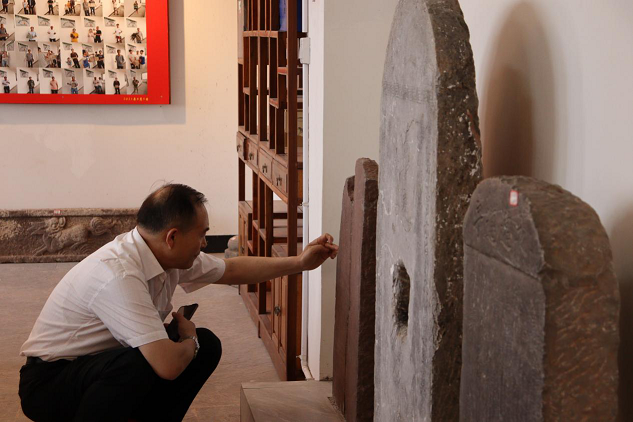 调研组在西双版纳境内象明乡茶马古道源头段进行实地调研,这一区域碑刻存量丰富,但存在“地广、人稀、点分散”的特点,难以保护。调研组在对境内传统文化保护工程——清乾隆二年赦封德郎·安人碑进行走访时发现,碑体虽于2016年进行过矫正、清理和加固,但风化严重,加之原本的刻字较浅,碑上文字难以识别。为保护石碑上的文字内容,经当地主管部门同意,调研组对碑体文字进行拓印,成功识读了原本模糊不清的文字,并将拓本交由西双版纳州图书馆进行装裱后交予当地文化站保存。调研组还对沿线文化站、乡史馆图书存量进行了调查。