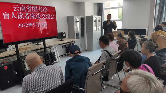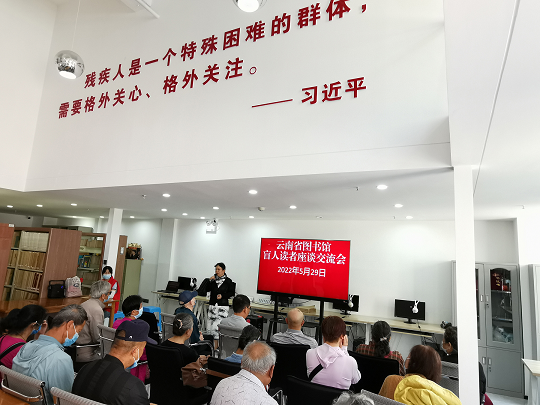 在2022年“图书馆服务宣传周”到来之际,为进一步宣传推广视障文化服务工作,同时进一步满足盲人读者的阅读、技能培训等知识需求,5月29日上午,云南省图书馆邀请30名盲人读者在视障阅览室暨盲人技能培训中心开展了座谈交流活动。