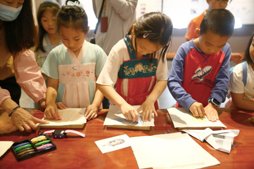 孩子们还参观了云南典籍博物馆,在专业讲解老师的带领下,近距离欣赏古籍珍本、了解文化遗产,大大增强孩子们的文化参与感、获得感和认同感。参观结束后,孩子们在老师的指导下亲自动手体验了传拓技艺。