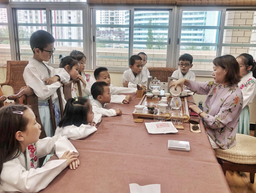 在普洱茶文化图书馆,孩子们学习了茶具知识及使用方法、泡茶礼仪等,上了一堂别开生面的中国传统文化课。