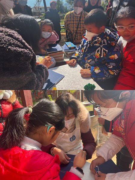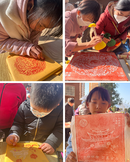 活动以云南省图书馆2023年春节特制雕版、党建雕版、仿古线装书等为题材,由云南省图书馆工作人员现场演示并教授古籍书装订与传拓技艺,讲授古籍基本知识,展示拓片创作成品。活动吸引广大社区群众积极参与,大家纷纷动手体验传拓技艺、缝制仿古线装书,以多种方式表达对新年的祝福。活动现场气氛热烈,备受群众喜爱。