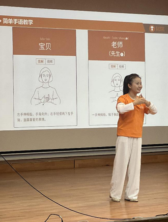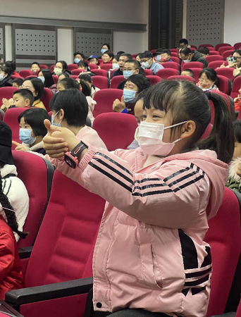 除了开展经典诵读等活动外,文化志愿者钟群老师用生动、活泼的方式,向现场200多名孩子及其家长教授了手语。大家在老师的带动下用手语交流,互相表达亲情爱意,让现场气氛达到了高潮。