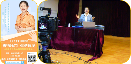 2023年3月26日,昆明铁道职业技术学院宁福芝教授受邀到云南省图书馆作了题为“善待压力 张弛有度——排解压力 身心健康的智慧策略”的公益讲座。本馆微信视频号同步进行线上直播。线上线下共200余人聆听了讲座。
