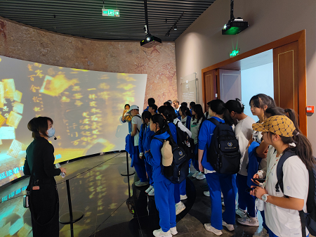 图为学生们在云南典籍博物馆认真聆听讲解