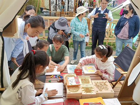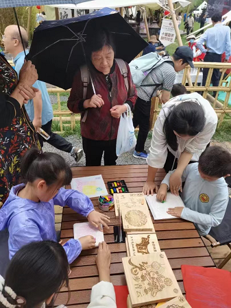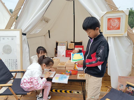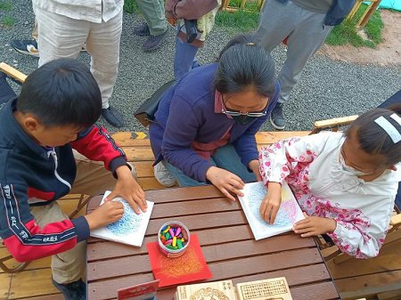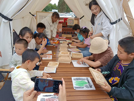 在晋宁区上蒜镇小渔村,云南省图书馆古籍修复保护传拓研习馆的老师为现场群众举办了沉浸式非遗传拓体验活动,让大家零距离感受非遗的魅力。其中,“跟着大师学非遗”深受小朋友们欢迎,在老师的帮助指导下,大家亲手拓印了十二生肖、一路象好、山茶花等作品,亲身感受到了中华优秀传统文化的博大精深和神奇魅力。