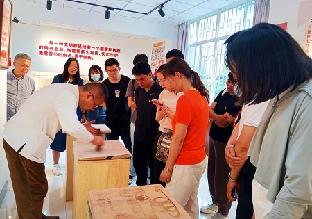 在蜡墨拓体验区,每位党员亲手体验拓印,在沉浸式非遗传拓体验中感受中华优秀传统文化的同时,深刻接受红色文化洗礼。