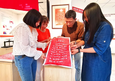 活动现场,大家沉浸式体验党旗下的非遗传拓技艺,一起拓印入党誓词,把入党誓词深深印在心里。通过借文墨之力铭记入党初心,牢记自己的党员身份,做到在日常工作和学习中努力发挥党员的先锋模范作用。