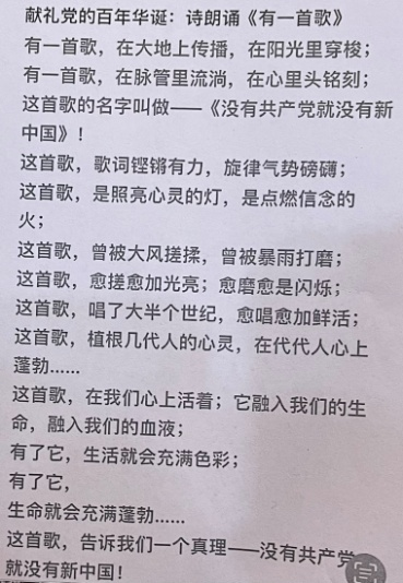 值得一提的是,一位热心的讲书人自行创作了题为《有一首歌》的诗歌,邀请现场人员一起诵读,表达了大家对党的忠诚和无限热爱。