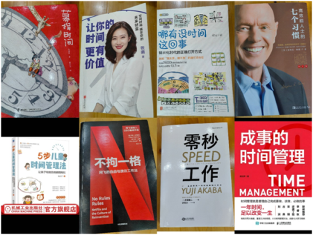本次活动共有8位书友现场分享了《让你的时间更有价值》、《募捐时间》、《高效能人士的七个习惯》、《不拘一格》、《哪有没时间这回事》、《零秒工作》、《5步儿童时间管理法》、《成事的时间管理》等书籍。