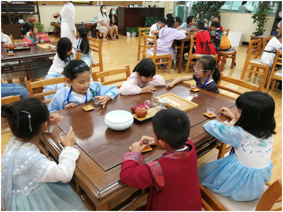 在普洱茶文化图书馆,工作人员带领孩子们学习了茶具知识及使用方法、泡茶礼仪和茶艺文化,给孩子们上了一堂别开生面的中国传统文化课。