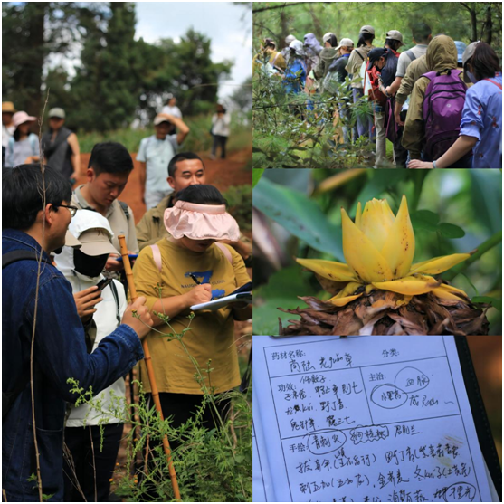 下午,任红华医生带领大家寻着古籍的指引,走进百草村山林,探寻那些百年来生长于此的各类中草药植物。通过任医生的专业讲解,大家认识了商陆、刺五加等一百余种医药植物。这些往日里耳熟能详的名称,通过实地研学,终于一睹它们的真容。更重要的是,通过与《滇南草本》图文的对照,跨越百年历史,与古人对话,充分感受到传统中医药文化的无穷魅力和云南丰富多彩的生物多样性。在短短两个小时的探寻过程中,大家的笔记上记满了各式各样的草药名称和功效,可谓收获满满、不虚此行。
