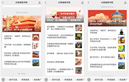特别值得一提的是,为了让读者在假日期间不受时间空间约束更加便捷地参与图书馆活动,云南省图书馆通过微信公众号、微博、抖音等新媒体平台推出了形式多样、内容丰富、寓教于乐、易于参与的10多场次线上阅读推广活动,包括“穿越古代看比赛, 运动诗词我来答”诗词会、“中秋潮会•游园闯关”线上主题活动、“这就是中国”系列主题绘本阅读、“赋能国庆·文化漫游”阅读打卡、“探索传统文化•共享美好生活”线上答题、“点燃孩子心中的强国梦”线上点赞留言活动等。这些活动紧扣节日主题,以国庆知识、中秋传统文化为切入点,围绕文化与旅游、科学等内容,让读者在书中旅行,饱览祖国的大美山河,感受中华传统文化的无尽魅力。