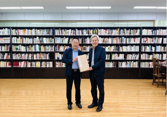 杨和祥馆长向林明常务副馆长赠送云南省图书馆影印出版的