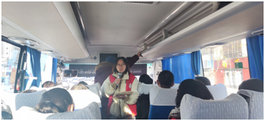 本次活动从云南省图书馆出发,乘车前往西山升庵祠。途中,云南省图书馆历史文献部工作人员向参加活动的读者介绍了徐霞客生平,以及馆藏清嘉庆十三年(1808)水心斋叶廷甲刻本《徐霞客游记》的基本情况,并讲解了如何使用云南古籍数字图书馆在线浏览《徐霞客游记》。