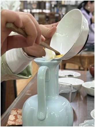 立春,为二十四节气之首。立,是“开始”之意;春,代表着温暖、生长。立春乃万物起始、一切更生之义,意味着新的一个轮回已开启,赋吉祥内蕴。活动开始,省图书馆地方文献部副主任曹雯担任主持,介绍活动概况后,由合作方凤兮文化的谭佩老师为大家讲述立春节气文化、风俗民情、物候特点等,茶友们听得津津有味的同时品鉴了三款茶品,分别是2023年的凤庆野生红茶、三清茶和2020年大益老茶头。三款茶茶香悠悠各具特点,令读者赞不绝口。其中“三清茶”尤受大家欢迎,这款茶是以凌寒不凋谢的梅花、寓意“福寿”的佛手柑、松子仁佐以莫干黄茶投入执壶中冲泡而成,是乾隆皇帝独创的特饮,他还专门做了一首《三清茶诗》来表达对三清茶的满意:梅花色不妖,佛手香且洁。松实味芳腴,三品殊清绝。