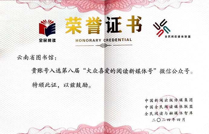 云南省图书馆微信公众号入选第八届“大众喜爱的阅读新媒体号”