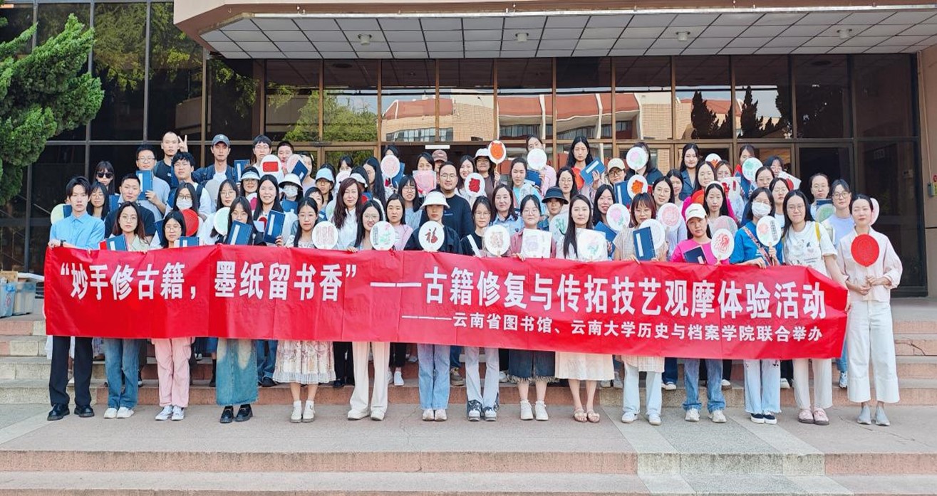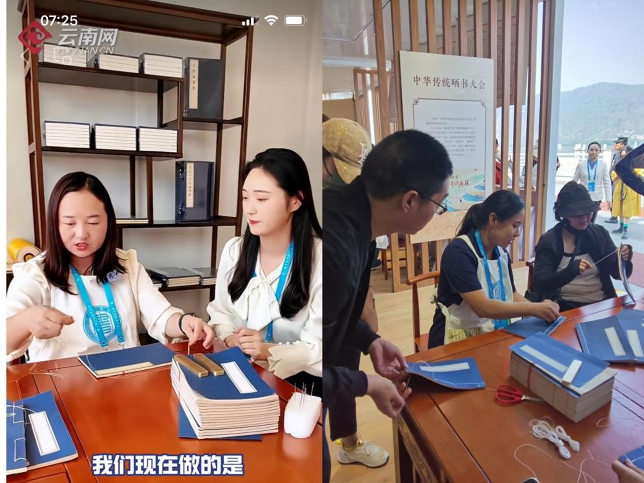 图为云大学生体验传拓和线装书制作技艺