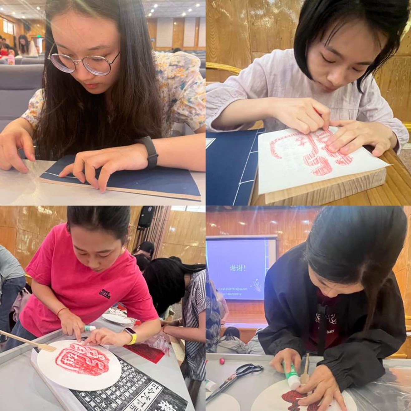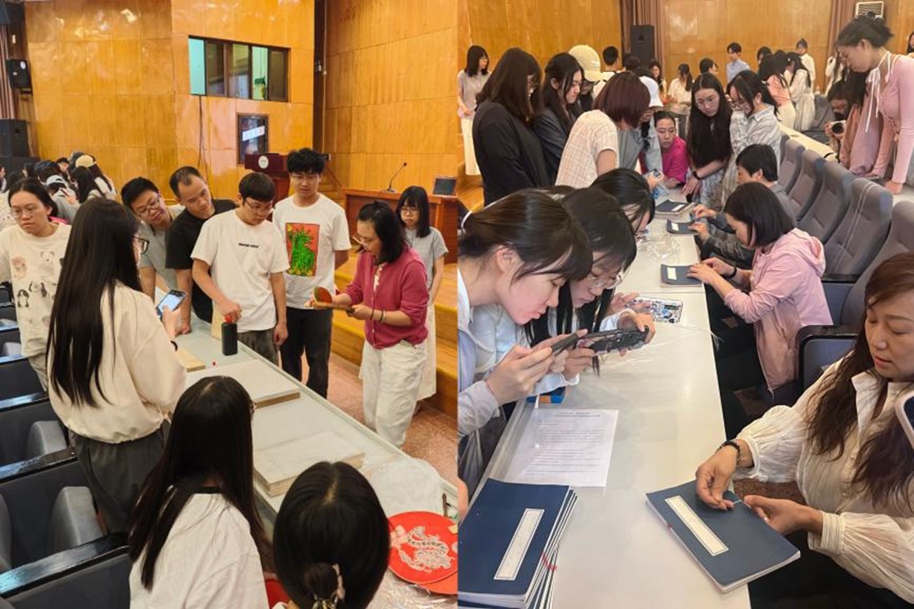 活动分为两个版块进行,在传拓技艺观摩体验活动中,看到拓印的图案一点点在纸上显现出来,大家都被博大精深的中华传拓文化所折服;在线装书制作体验环节,同学们迫不及待地拿起手中的针线动手制作,从穿针引线到装订成书,制作一本属于自己的“线装笔记本”,沉浸式体验传统文化蕴含的艺术与智慧,感受中华优秀传统文化的魅力。