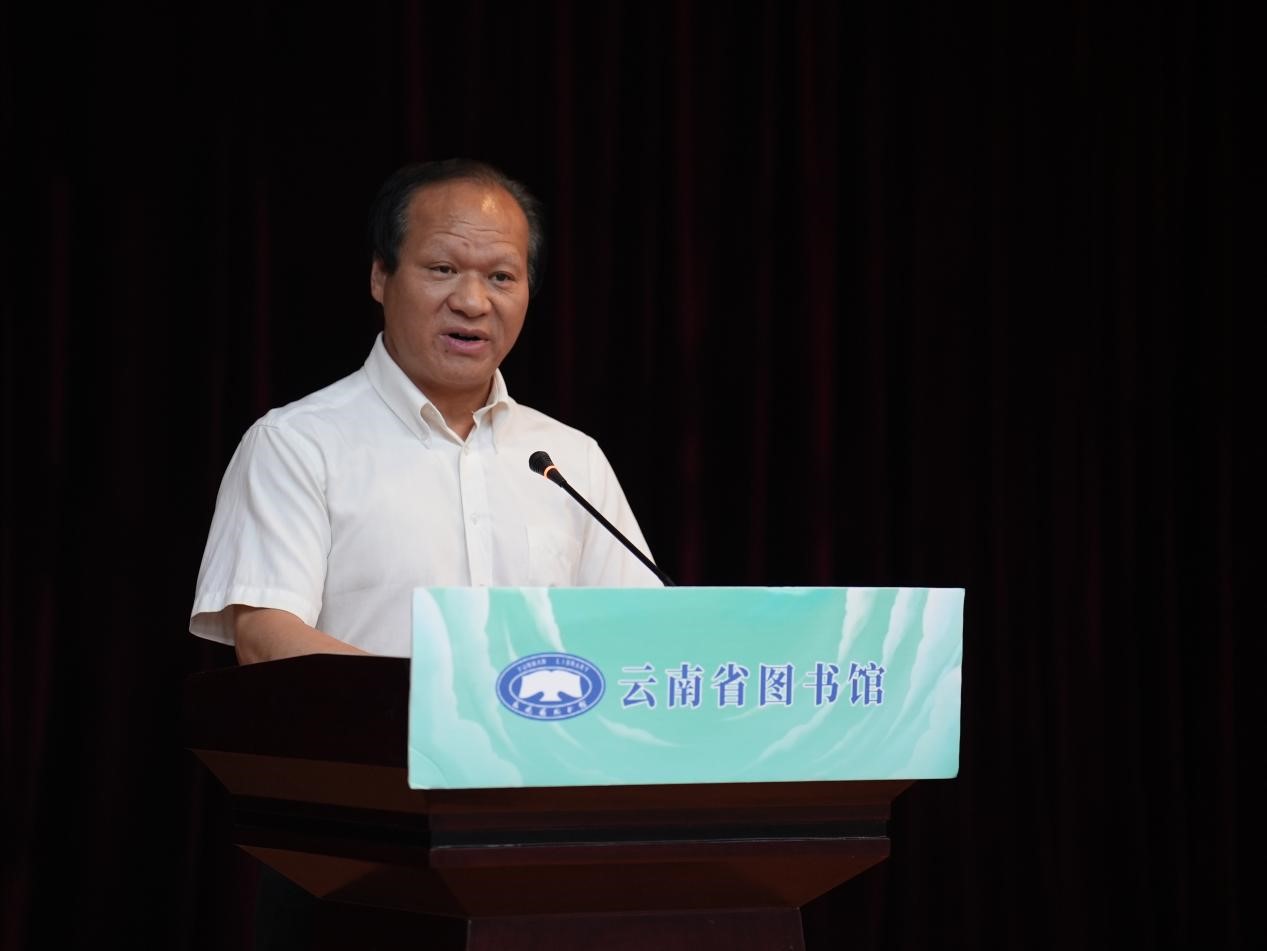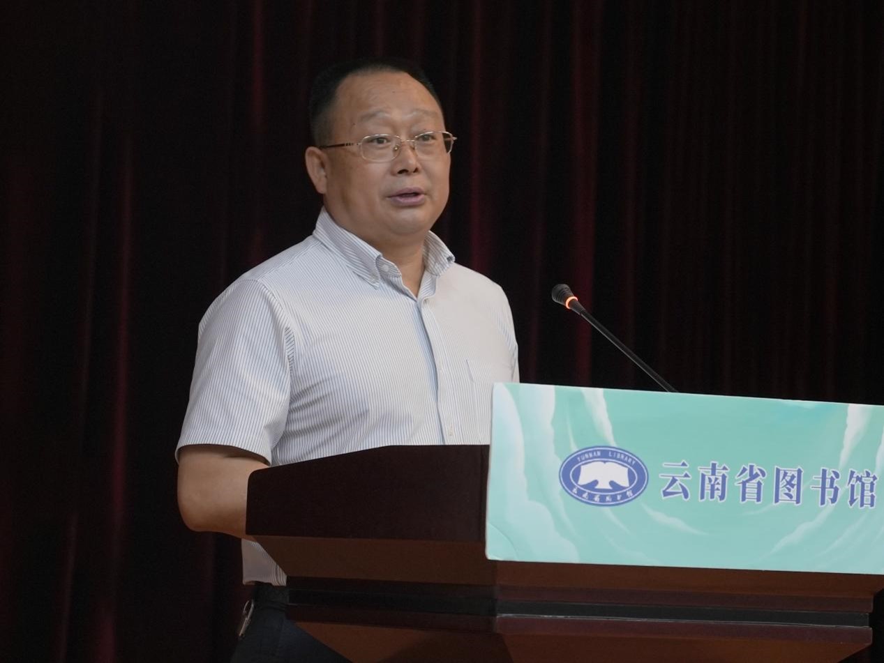 图为云南省图书馆党委书记、馆长杨和祥在启动仪式上致辞