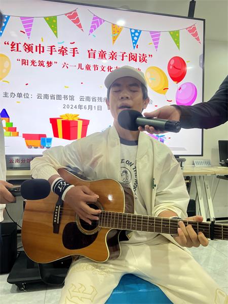 活动中,来自昆明市盲哑学校的张海涛同学以其特有的低沉嗓音深情演唱了《孤勇者》这首歌曲,他的精彩演绎赢得了在场所有儿童的共鸣与赞赏。同样来自该校的谭智涵同学以甜美的童声为大家带来了《亲爱的妈妈》,歌声温柔动人,触动了听众的心弦。